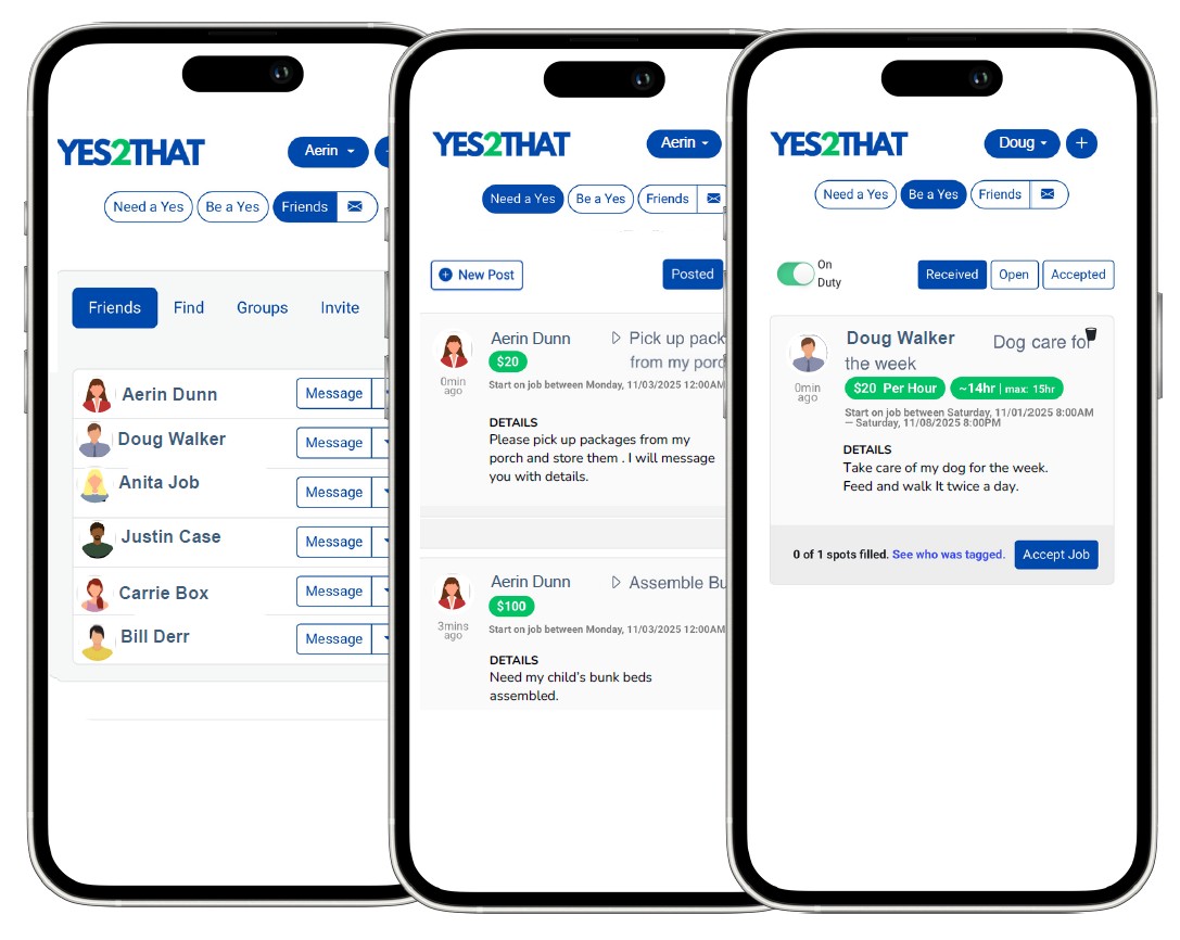 Friends who need help with jobs can hire friends who want to earn extra money.
